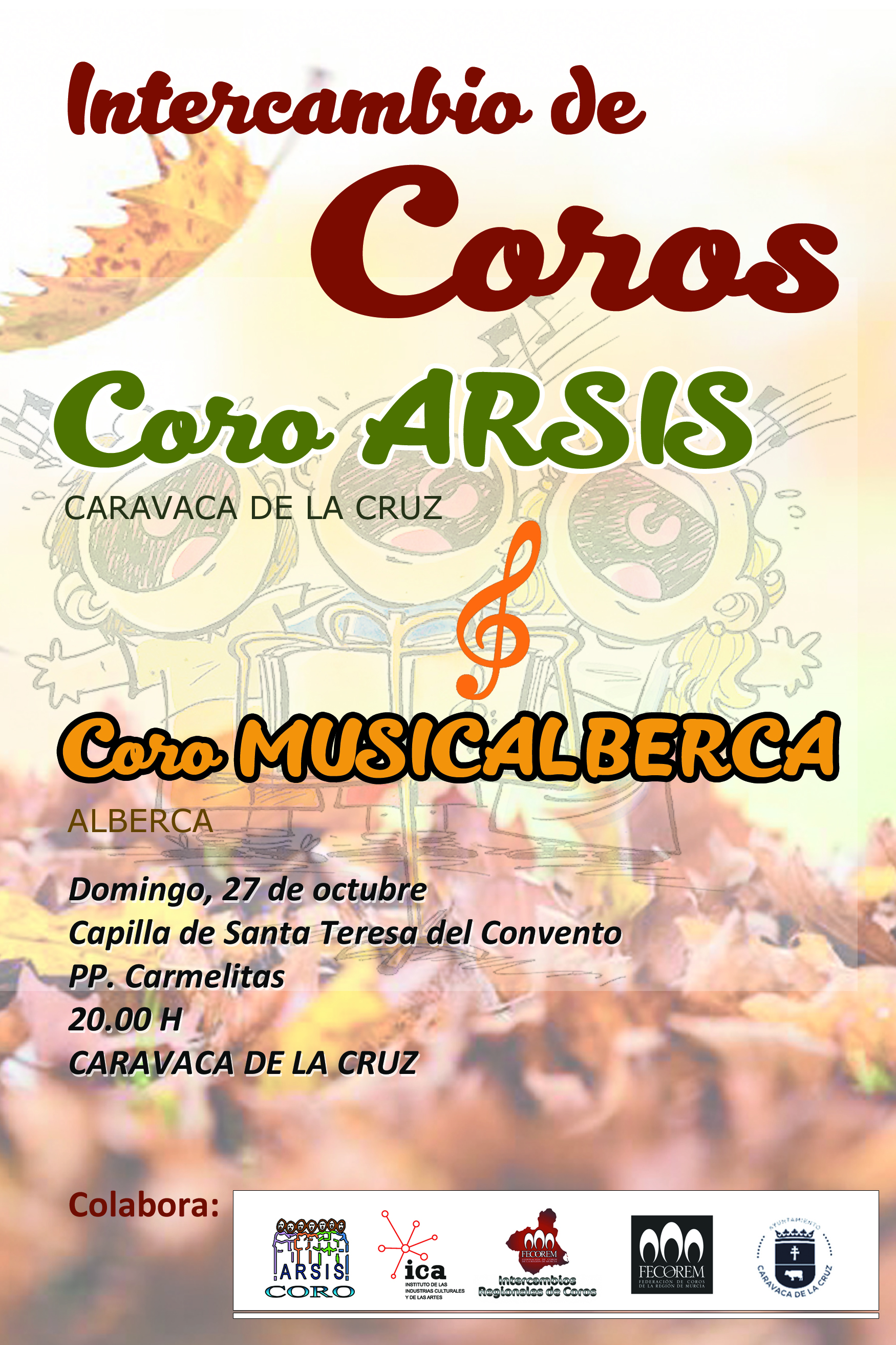 Dentro de los Intercambios Regionales de Coros, las formaciones de música coral ‘Arsis’ y ‘Musicalberca’ ofrecen un recital conjunto este domingo, 27 de octubre, a las 20.00 horas, en la capilla de Santa Teresa de la iglesia de los Padres Carmelitas de Caravaca de la Cruz.