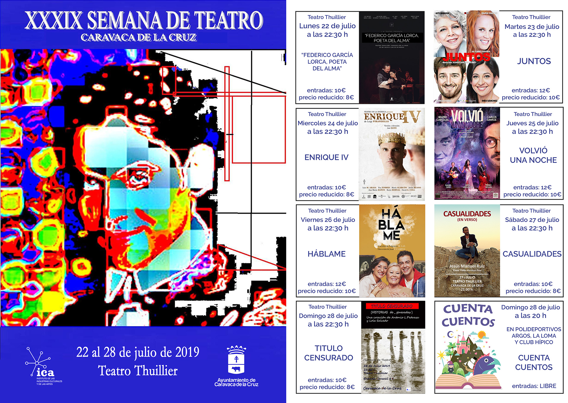 La Semana de Teatro de Caravaca de la Cruz, que alcanza su XXXIX edición, se celebrará del 22 al 28 de julio con la participación de diferentes compañías locales, murcianas y del panorama nacional, que pondrán en escena espectáculos de géneros como la comedia, el monólogo o el drama histórico.