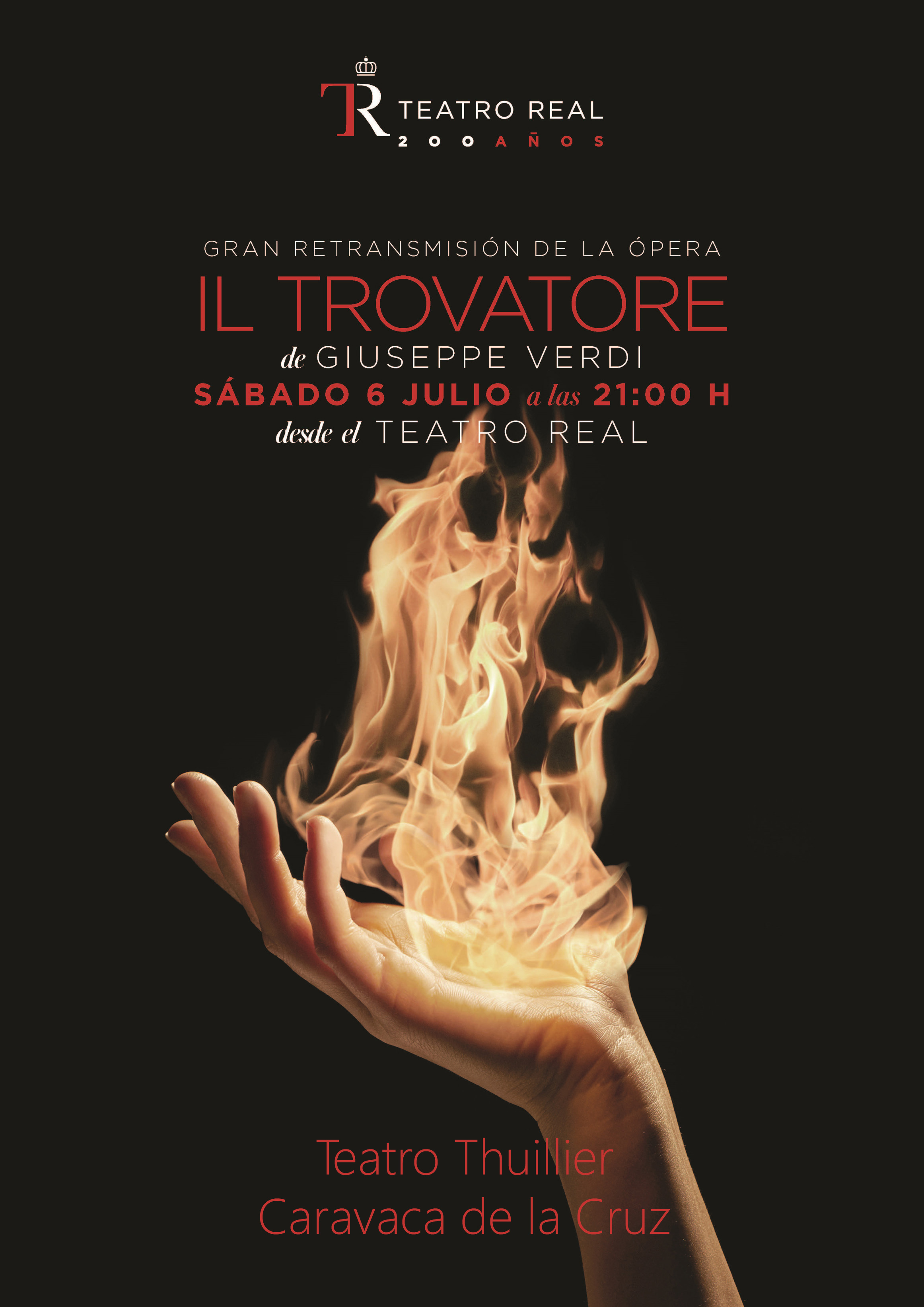 01/07/19. El Ayuntamiento de Caravaca de la Cruz, a través de su Concejalía de Cultura, se suma a la iniciativa promovida por el Teatro Real de Madrid dentro de la quinta edición de la ‘Semana de la Ópera’. El teatro Thuillier será uno de los lugares de España donde se retransmitirá en directo ‘Il Trovatore’, de Giuseppe Verdi, este sábado, 6 de julio, a las 21.00 horas, con accesogratuito hasta completar aforo.