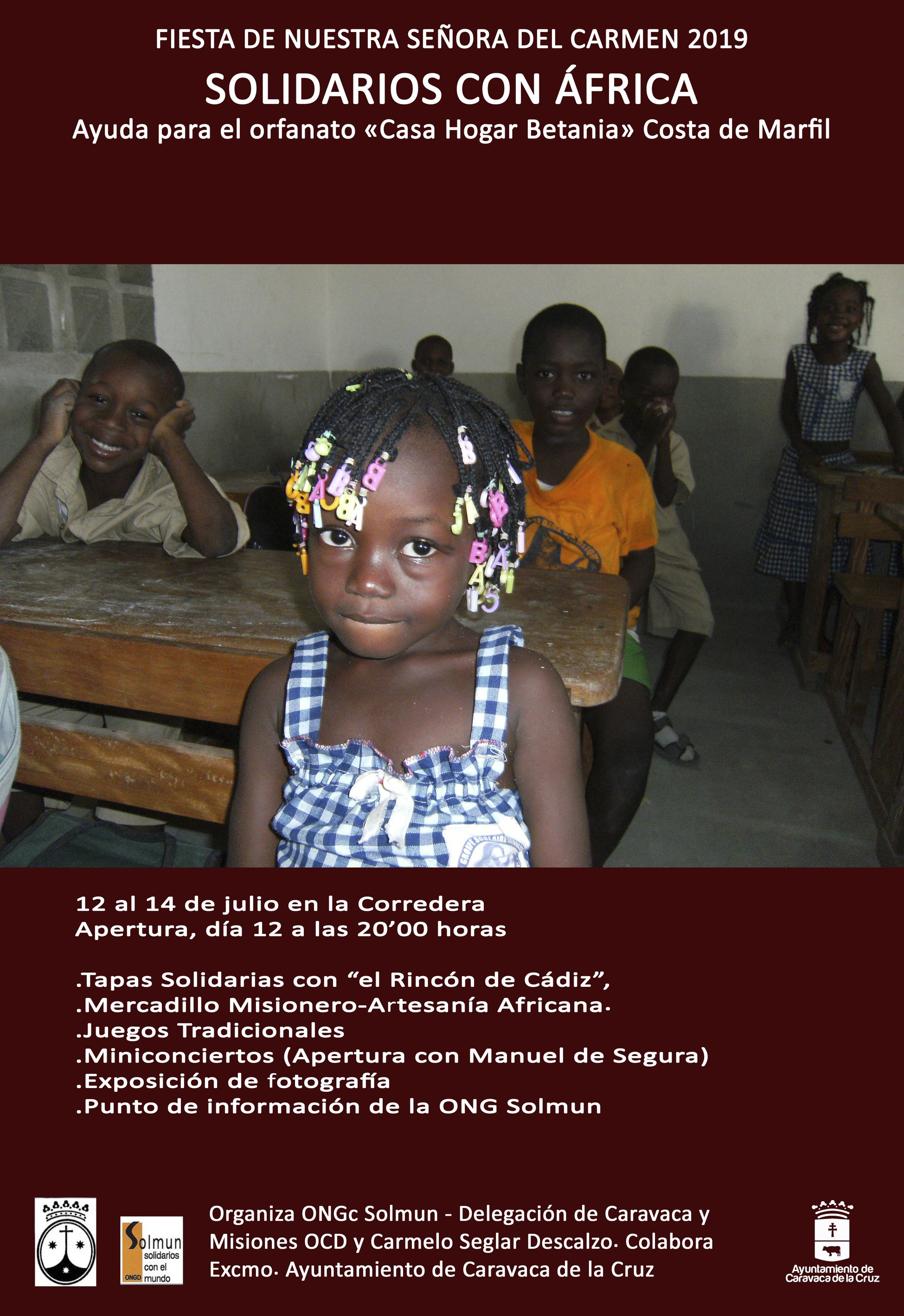 Junto a los actos de carácter religioso -que tendrán su colofón en la tarde del 16 de julio con la procesión en honor a Nuestra Señora del Carmen- no faltará ‘El Chiringuito ‘Rincón de Cádiz’, con tapas andaluzas y continentales; ‘La Tómbola Solidaria’, con las aportaciones generosas de comerciantes y empresas locales; ‘El rastrillo de Artesanía’, que mostrará la cultura africana; los ‘mini conciertos’, con la apertura del cantaor de copla Manuel de Segura; los juegos infantiles tradicionales o una exposición de fotografía. Todo ello para poder dotar de instrumental y equipamiento básico a la Casa Hogar Betania de Costa de Marfil. La Fiesta Solidaria comenzará el viernes, 12 de julio, a las 20.00 horas y prolongará hasta el domingo 14 de julio.