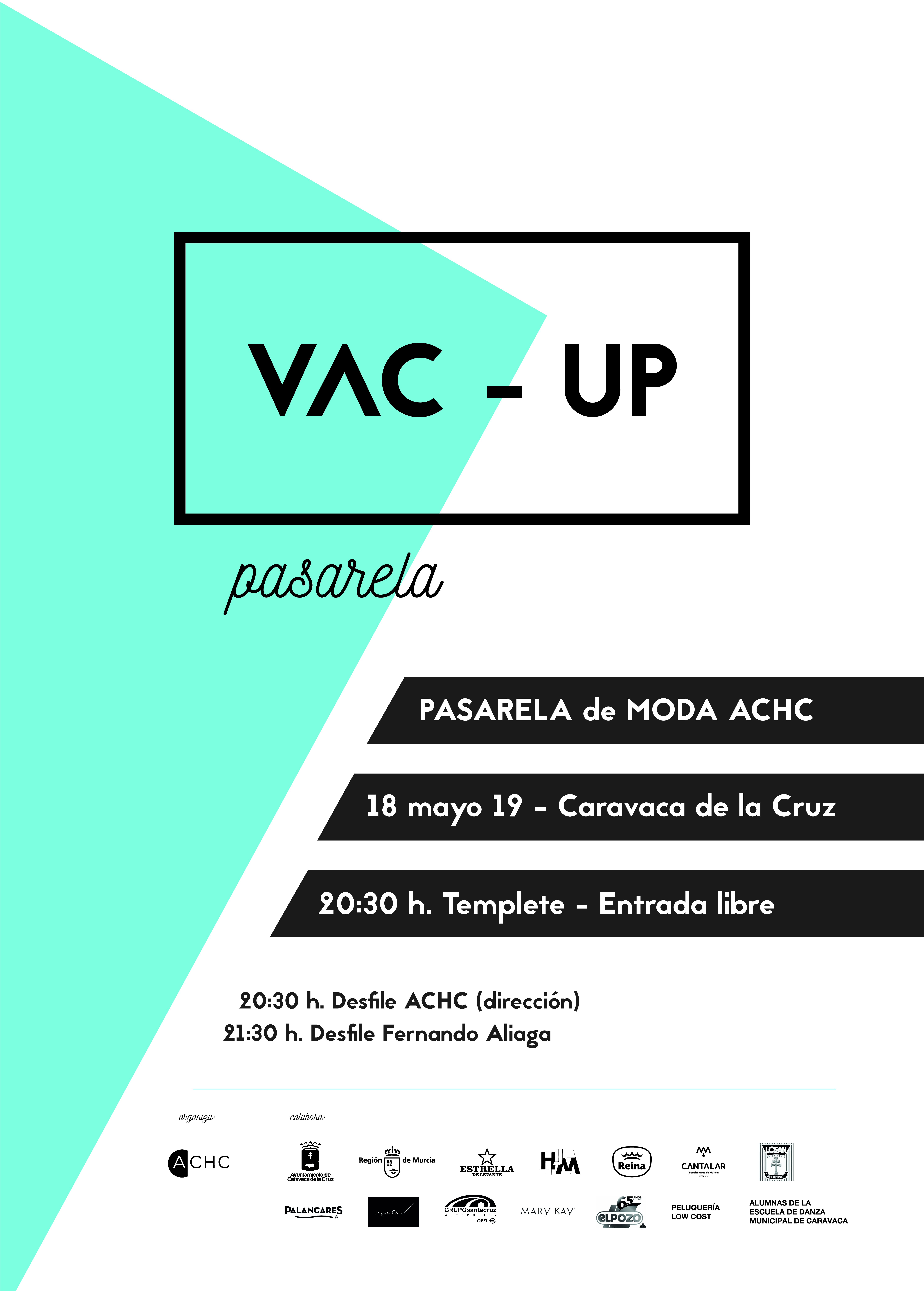 La Asociación de Comerciantes y Hosteleros de Caravaca de la Cruz celebra la primera edición de la pasarela de moda ‘VAC-UP’. El evento, que cuenta con el apoyo del Ayuntamiento de Caravaca de la Cruz, de la Dirección General de Comercio y de distintas firmas colaboradoras, se celebra este sábado, 18 de mayo, en el paseo de La Corredera. La pasarela dará comienzo a las 20.30 horas.