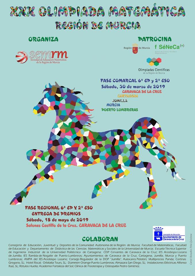 Caravaca de la Cruz será este sábado, 18 de mayo, la sede de la fase final de la trigésima edición de la Olimpiada de Matemática de la Región de Murcia. En Salones Castillo de la Cruz se darán cita, a partir de las 9.30 horas, los 20 alumnos mejor clasificados de cada categoría, cuyos respectivos finalistas pasarán a la fase nacional, en Melilla para los alumnos de Primaria y en Jaén para los de Secundaria.