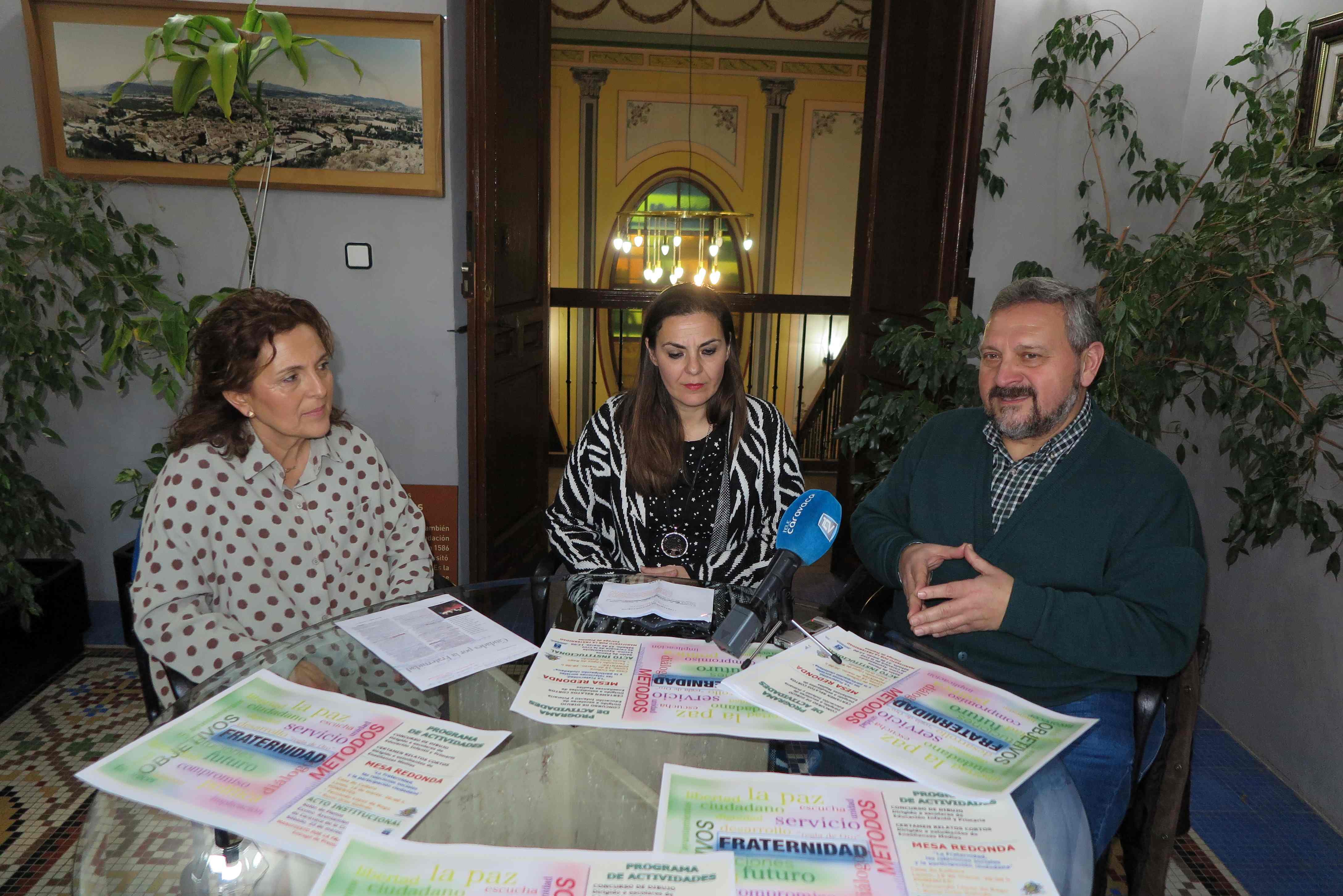 La edil que dirige el área, María José Soria, junto a los representantes dicha asociación local, Mari Carmen Giménez y Juan Fernández, han realizado un llamamiento a la participación, ya que el objetivo es promover entre personas de todas las edades, y de forma especial entre los jóvenes, el desarrollo de la cultura del diálogo, el compromiso con fraternidad, la paz, la solidaridad y los derechos humanos.