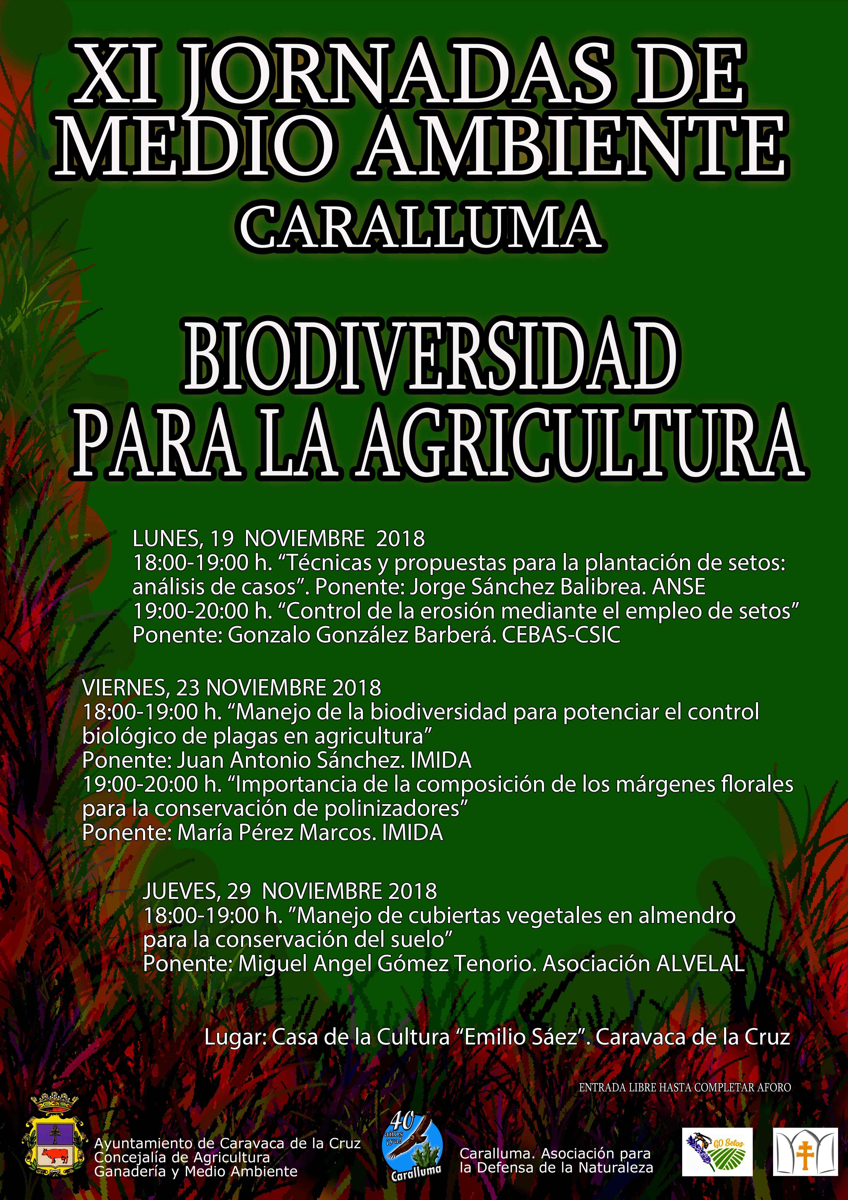 16/11/18. Caravaca celebra sus XI Jornadas de Medio Ambiente del lunes 19 al jueves 29 de noviembre, con distintas ponencias que tendrán como nexo de unión la biodiversidad para la agricultura. Las actividades se desarrollarán en la Casa de la Cultura ‘Emilio Sáez’, con acceso libre hasta completar aforo.