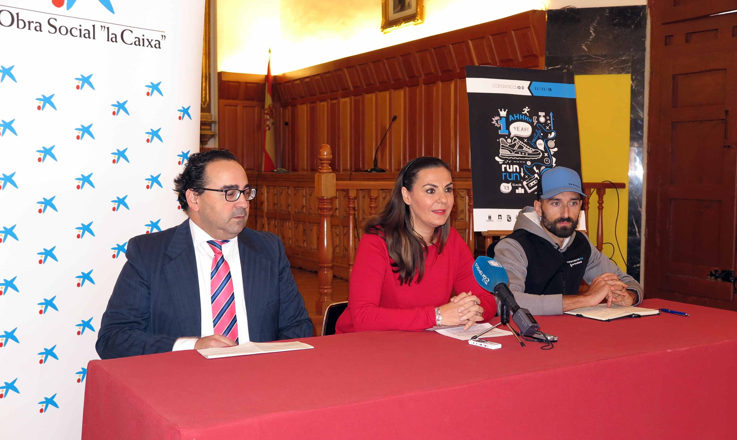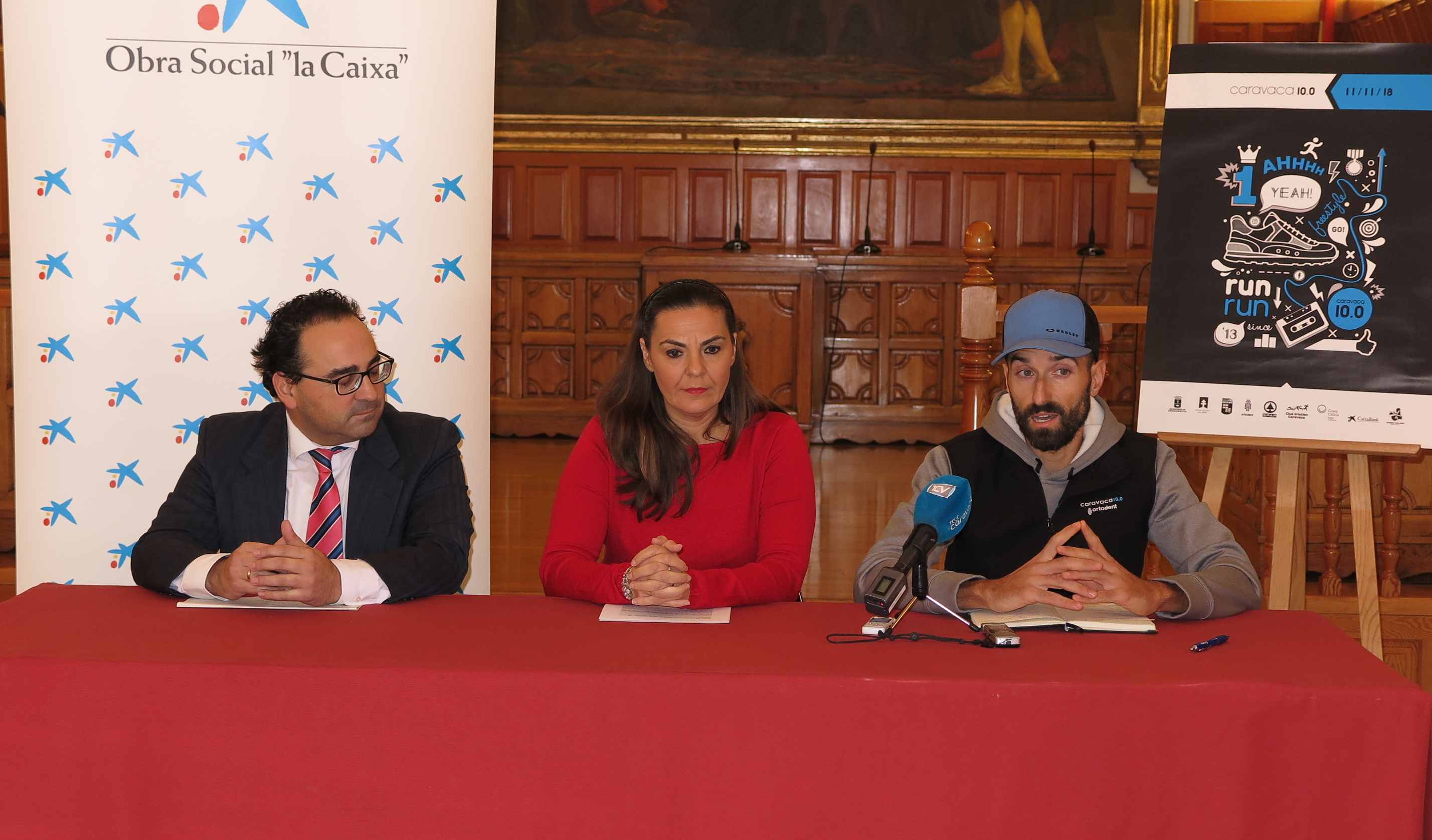 La concejal de Deportes en el Ayuntamiento de Caravaca de la Cruz, María José Soria, el presidente de la Asociación Deportiva ‘Caravaca 10.0’, Sebastián Abril, y el director de una de las dos oficinas de Caixa Bank en Caravaca, Francisco Gabarrón, han dado a conocer los detalles de esta nueva edición de ‘Caravaca 10.0’, que entre sus novedades incluye una apuesta por la plena inclusión en el deporte de las personas con discapacidad, a través de la colaboración establecida con la Asociación de Personas con Discapacidad Intelectual del Noroeste (APCOM), cuyos usuarios formarán parte de la carrera y presentarán su campaña ‘Hacia la meta’.