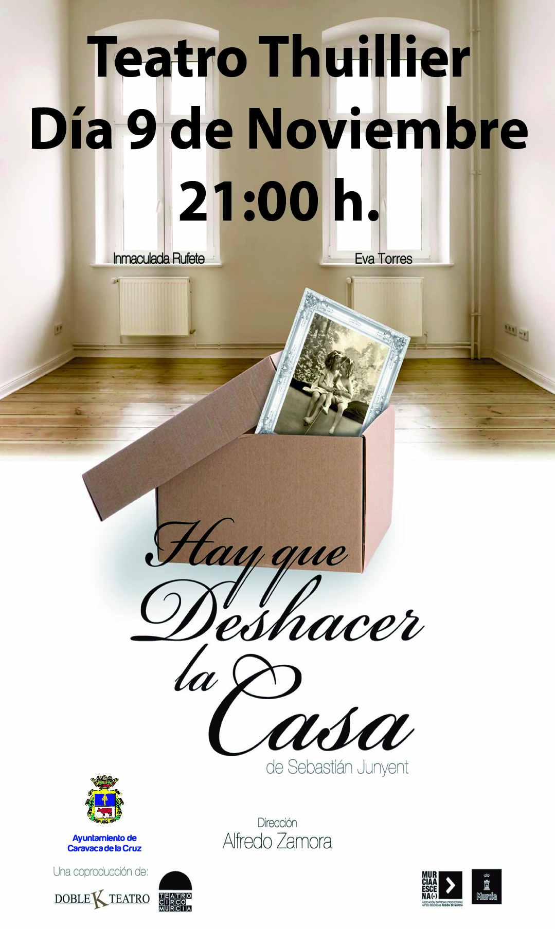 La compañía murciana ‘Doble K Teatro’, que dirige Alfredo Zamora, pondrá en escena ‘Hay que deshacer la casa’, protagonizada por las actrices Eva Torres e Inmaculada Rufete, que darán vida a dos hermanas que se reencuentran en la casa familiar después del fallecimiento de su madre. En esta obra de Sebastián Junyent, ambientada en los años ochenta, “se habla de amor, de recuerdos, de dolor con ternura y también algo de humor, con guiños cinéfilos y referencias a casas llenas de silencios, con habitaciones cerradas a las que estaba prohibido entrar”, según explicó su director. Las entradas se pueden adquirir al precio de 12 euros en Nueva Joyería y en la taquilla del teatro.