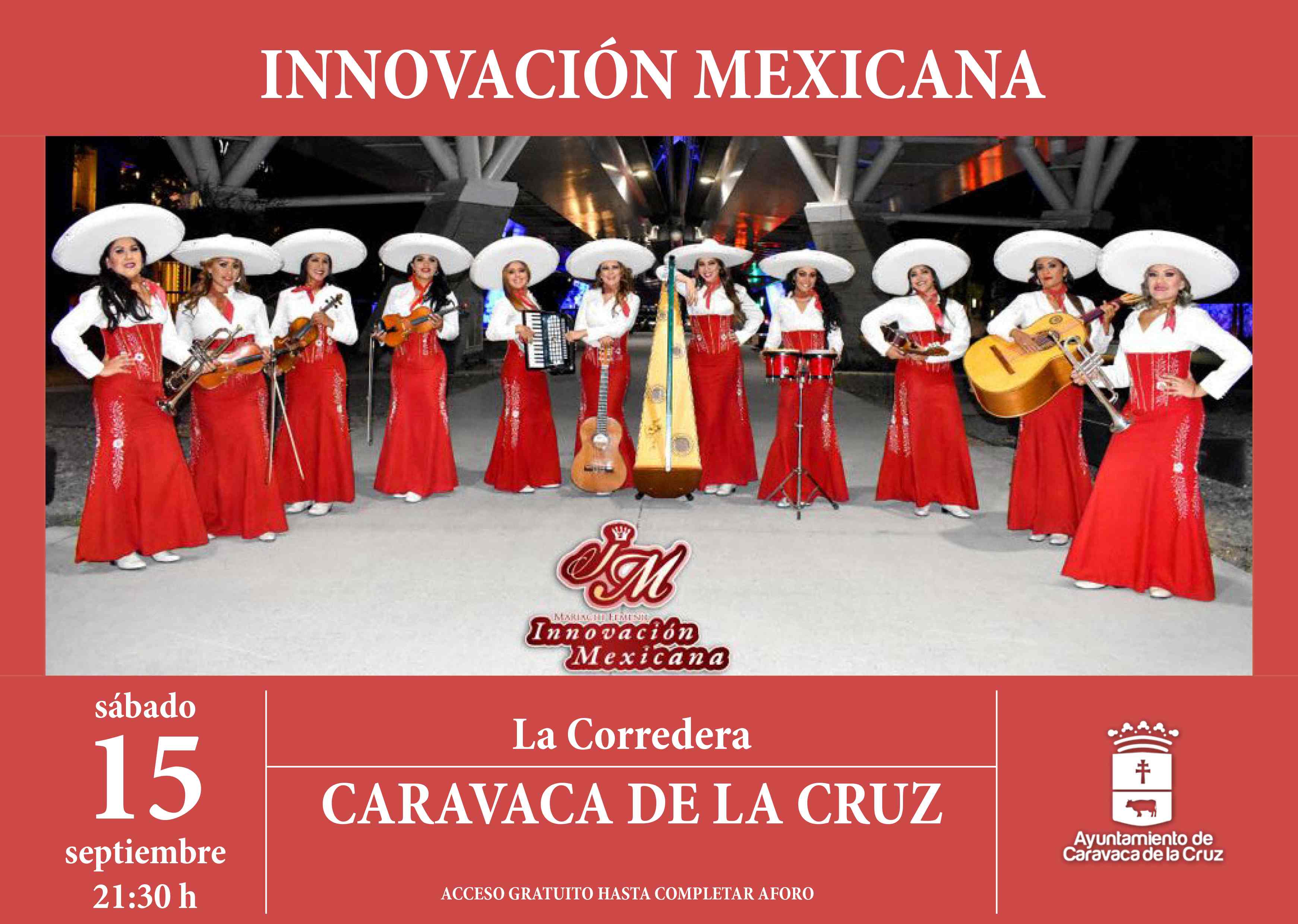 ‘Innovación Mexicana’ es una formación músico-vocal, compuesta por once artistas, siendo el primer grupo mariachi integrado exclusivamente por mujeres cantantes e instrumentistas. “Mostramos por distintos escenarios internacionales la música tradicional mexicana, así como otros variados y versátiles géneros conocidos por todos, lo que hace que seamos una verdadera innovación musical”, según destacó una de las componentes del grupo. Desde ‘Innovación Mexicana’ también subrayaron su apuesta por la igualdad de la mujer en el mundo de la música, ya que el grupo está promovido y formado por músicas y voces femeninas, lo que supone una novedad y una singularidad dentro del estilo mariachi.