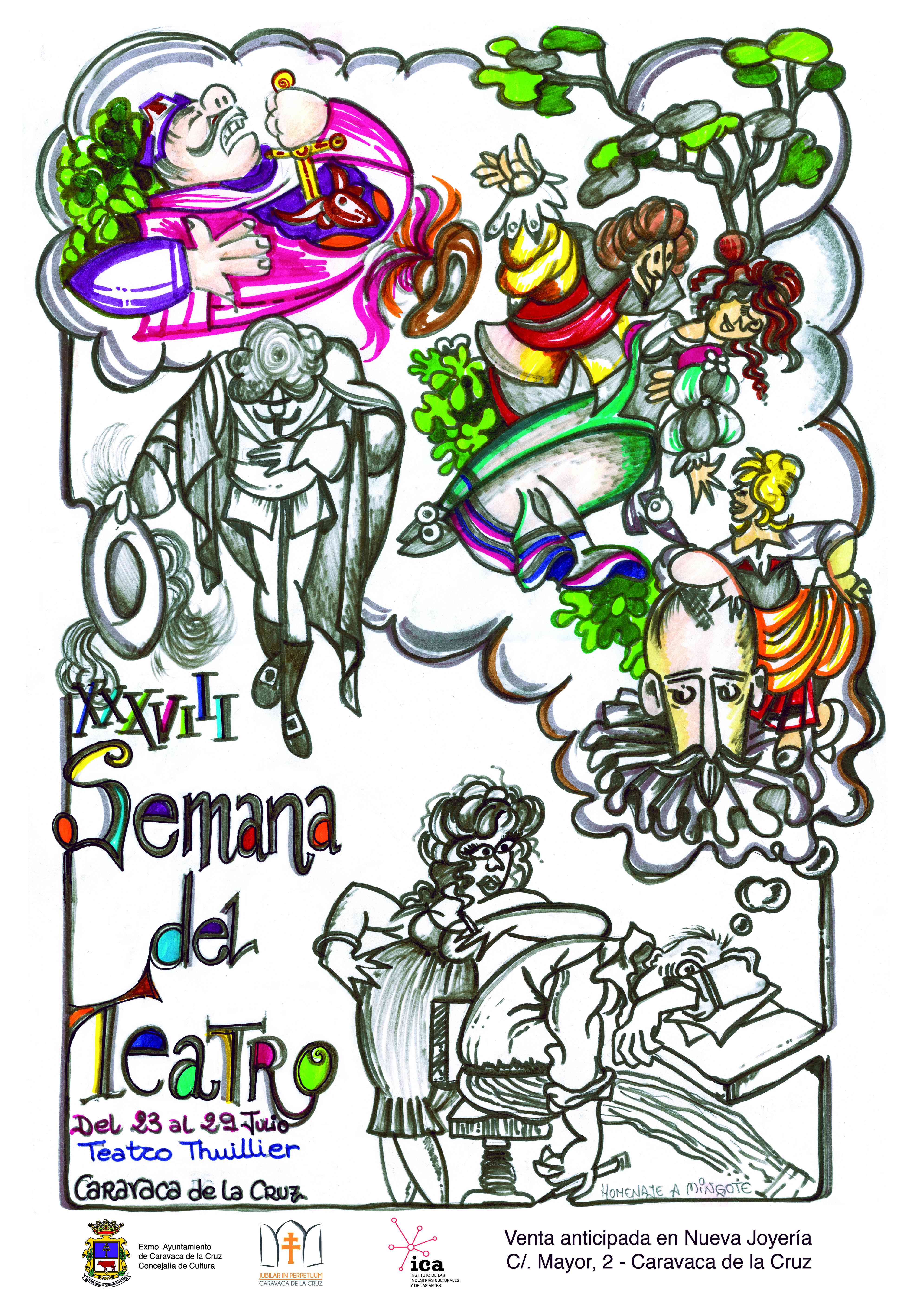 En la presentación también participó la autora del cartel anunciador, Gloria López, que ha querido rendir un homenaje al dibujante Antonio Mingote, así como los caravaqueños Luis Martínez Arasa y María Reyes Aznar, que junto a Lola Salcedo, forman parte del elenco de actores y actrices de la próxima edición de la Semana de Teatro.
