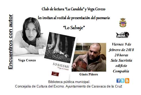 La Concejalía de Cultura del Ayuntamiento de Caravaca de la Cruz, dentro de las actividades de animación a la lectura promovidas por la Biblioteca Pública Municipal, presenta este viernes, 9 de febrero, a las 20.00 horas, en la sala de la sacristía de la Compañía de Jesús, el poemario ‘Lo salvaje’, de la escritora Vega Cerezo.