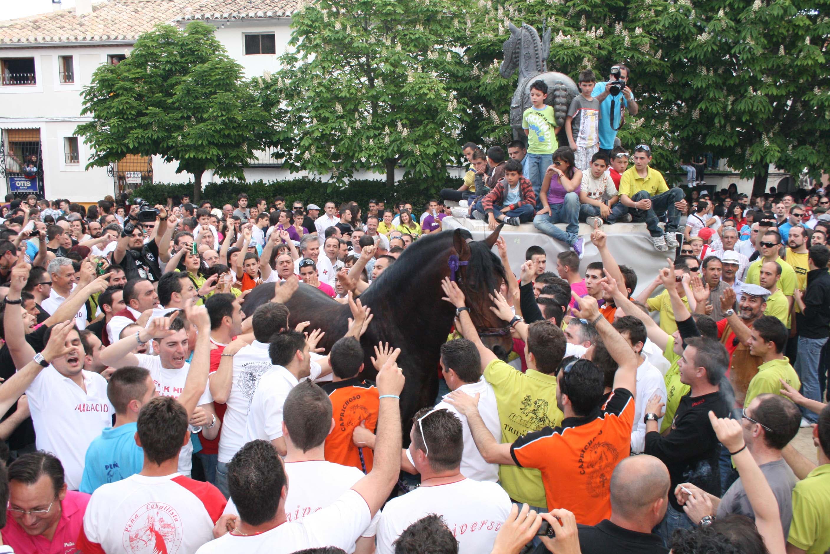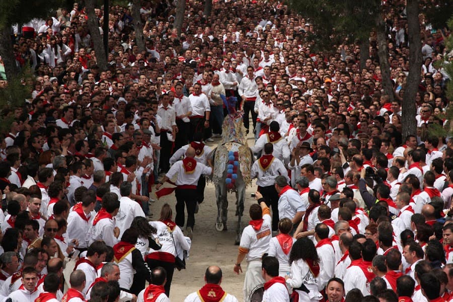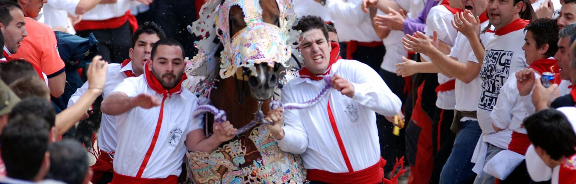 De todos cuantos festejos integran las fiestas patronales, sin duda el más original es el de los Caballos del Vino, que tiene lugar en la tarde del día 1 y la mañana del 2 de mayo, y en el que se integran tres concursos: el de Caballo a Pelo, el de Enjaezamiento y la Carrera.