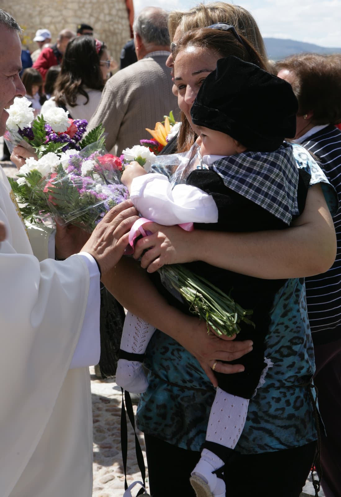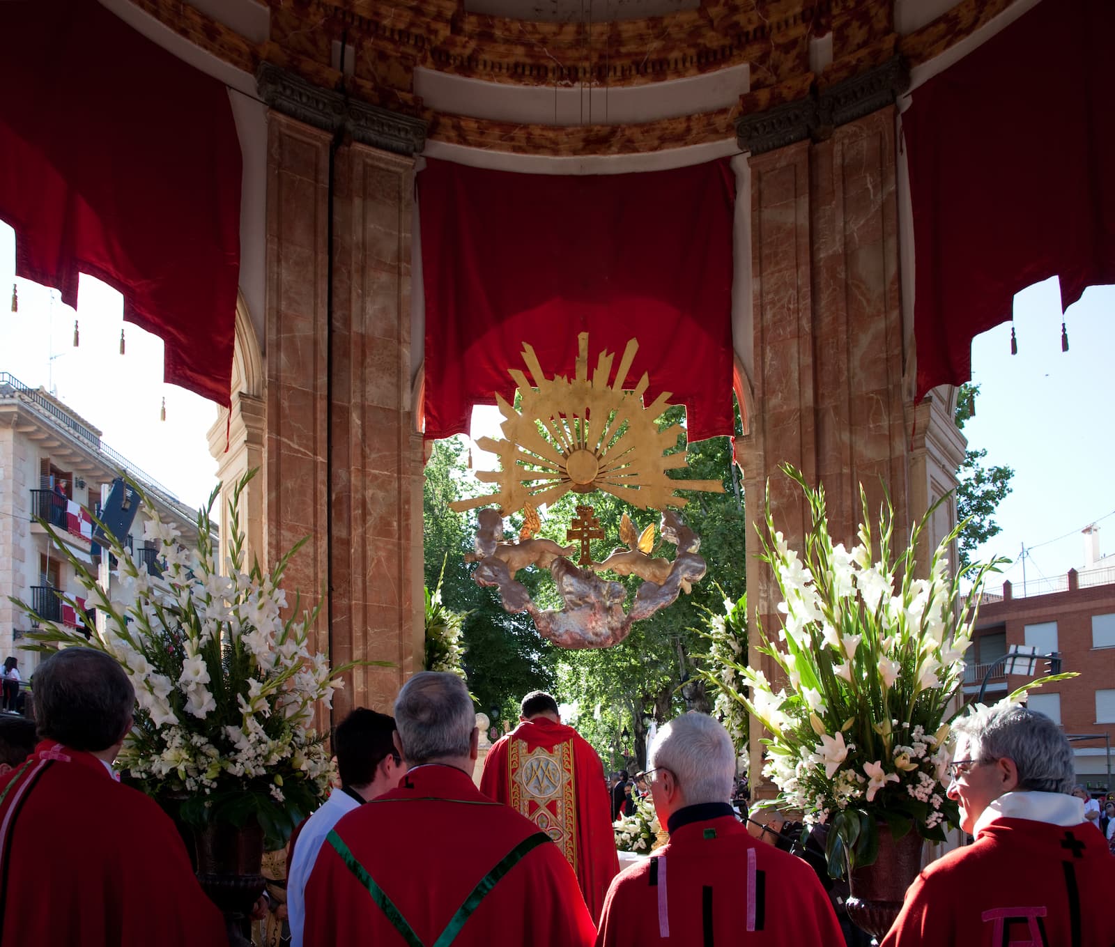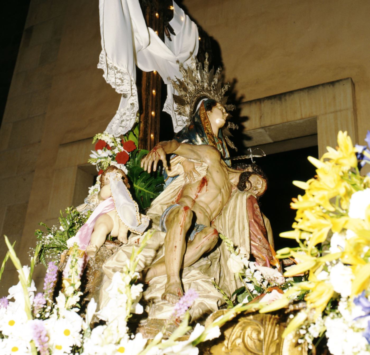 La Cruz sale fuera para presidir la misa y recibir las flores. El marco engrandece al ritual. Es el primer contacto emocional, visual y ambiental con lo que ya es irreversible. El tiempo está cumplido.