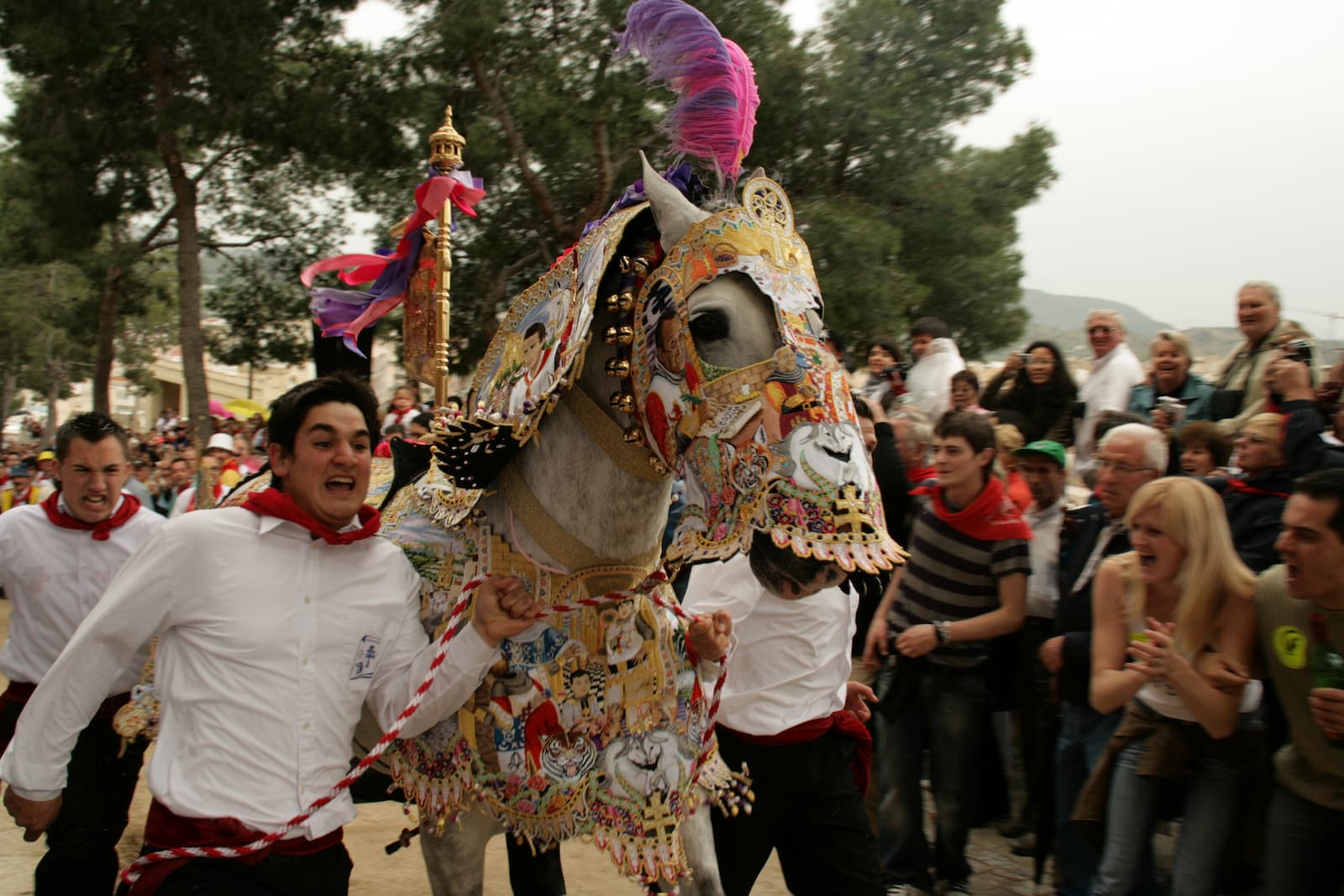 Los caballos han salido por sus barrios y calles a dar el inicial y tranquilo paseo. Se está cumpliendo el rito. Es la exaltación del caballo, el culto a los hijos del viento; solo, sin montar, con sus cuatro caballistas es el centro de atención, recordatorio de un espíritu legendario que en este caso está vinculado a la historia local y al ritual de bendición del vino.
