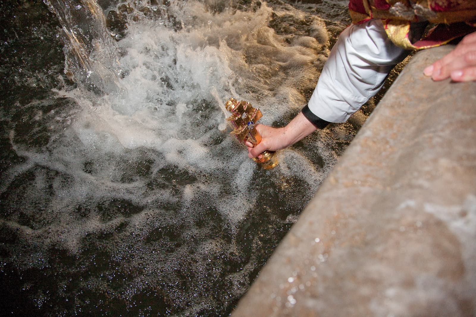 Al llegar al Templete, es introducida dentro del recinto para sumergirse en el agua por cada uno de los cinco arcos del monumento. El baño es el ritual más importante, cargado del más rico simbolismo.