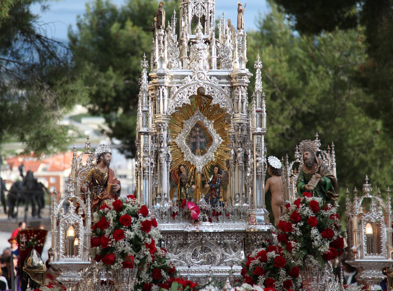 La tarde es procesión, ritmo pausado, solemne y organizado. Hay tonos legendarios, evocadores de una Cruz protectora de las tierras de frontera, cuyas sierras de la Serrata y Mojantes se divisan al fondo. Todo el desfile por la Gran Vía y calle Mayor hasta el Salvador prosigue su ritmo en una ambientación tranquila, sosegada, relajada y relajante. Es otra Caravaca.