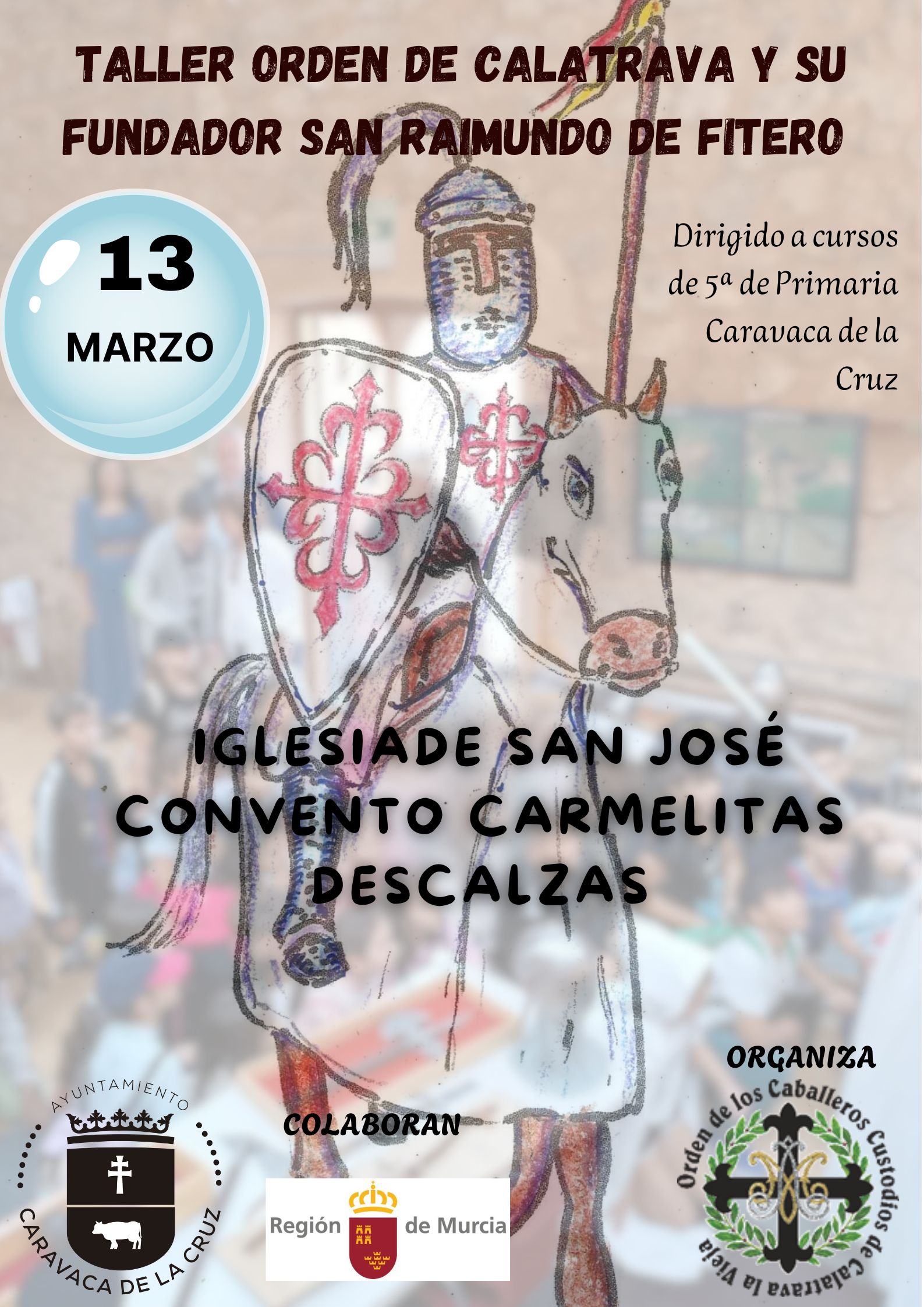 La muestra, organizada por la Orden de los Caballeros Custodios de Calatrava la Vieja con la colaboración de la Concejalía de Cultura del Ayuntamiento de Caravaca y la Comunidad Autónoma, estará acompañada de actividades paralelas de carácter didáctico. En concreto, se han programado talleres dirigidos al alumnado de 5º de Primaria y una conferencia titulada “Las órdenes militares en el siglo XXI” a cargo de Ramona Molina Pinar, que tendrá lugar en el salón de actos de la Casa de la Cultura ‘Emilio Sáez’ el martes 18 de marzo, a las 19.30 horas.