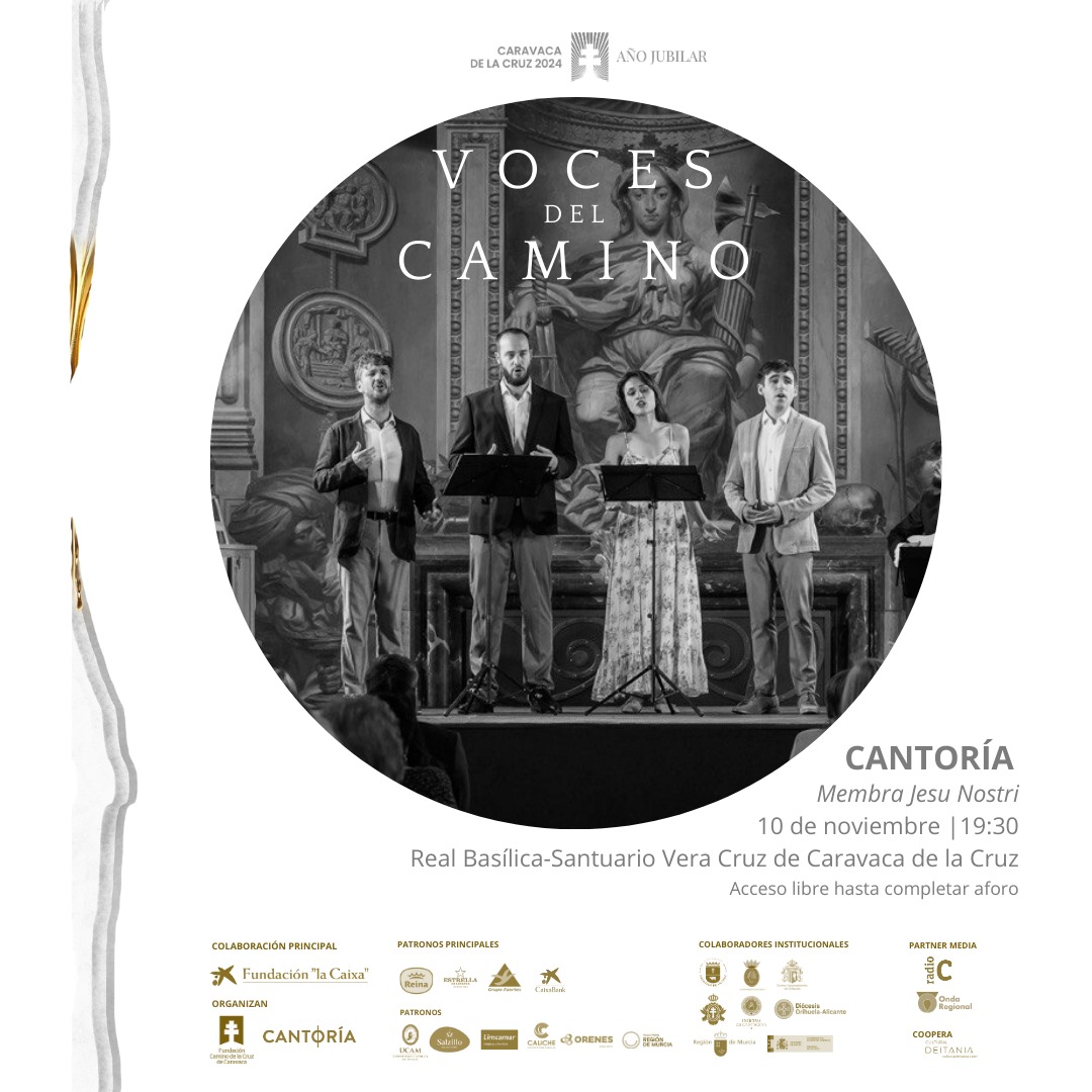05/11/2024. El ciclo ‘Voces del Camino’, enmarcado en la programación cultural del Año Jubilar 2024, se abre este domingo, 10 de noviembre, en la Real Basílica de la Vera Cruz de Caravaca con el concierto de la prestigiosa formación de música vocal ‘Cantoría’.
