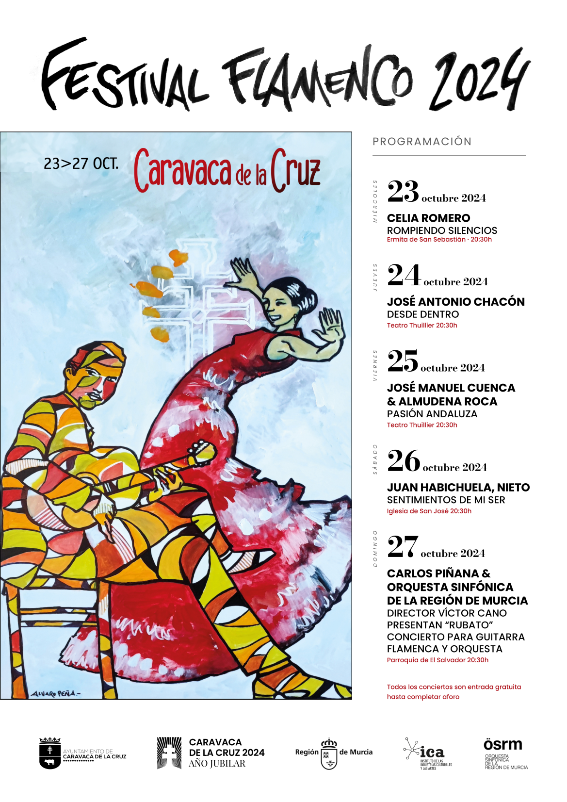22/10/2024. Caravaca de la Cruz celebra esta semana la primera edición de su festival de flamenco de la mano de consagrados cantantes, guitarristas y bailaores de este arte reconocido Patrimonio Cultural Inmaterial de la Humanidad. El evento cultural, organizado por el Ayuntamiento caravaqueño en el marco de la programación especial del Año Jubilar 2024, contará con cinco conciertos de acceso gratuito en diversos espacios monumentales de la localidad desde este miércoles, 23 de octubre, al próximo domingo, 27 octubre.