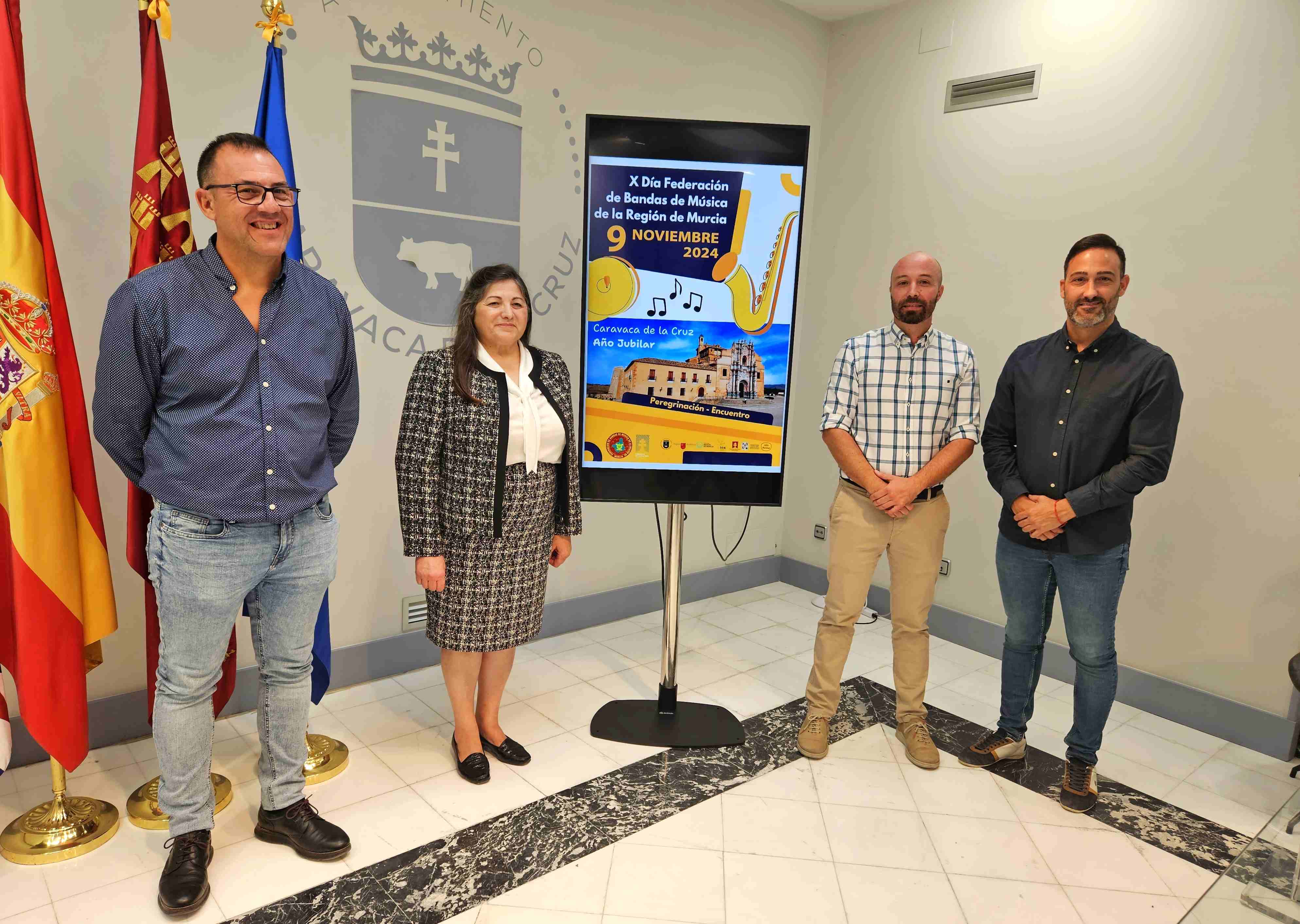 “Este encuentro, donde se darán cita componentes de más de veinte bandas procedentes de distintos municipios de nuestra Región, es otra de las actividades destacadas incluidas en la programación especial del Año Jubilar 2024”, tal y como ha avanzado el concejal de Cultura y Festejos, Joaquín Zaplana, acompañado de la presidenta de la Federación Bandas de la Región de Murcia, Ginesa Zamora, y del vicepresidente de la Agrupación Musical Caravaca, Ángel Matías Teruel.