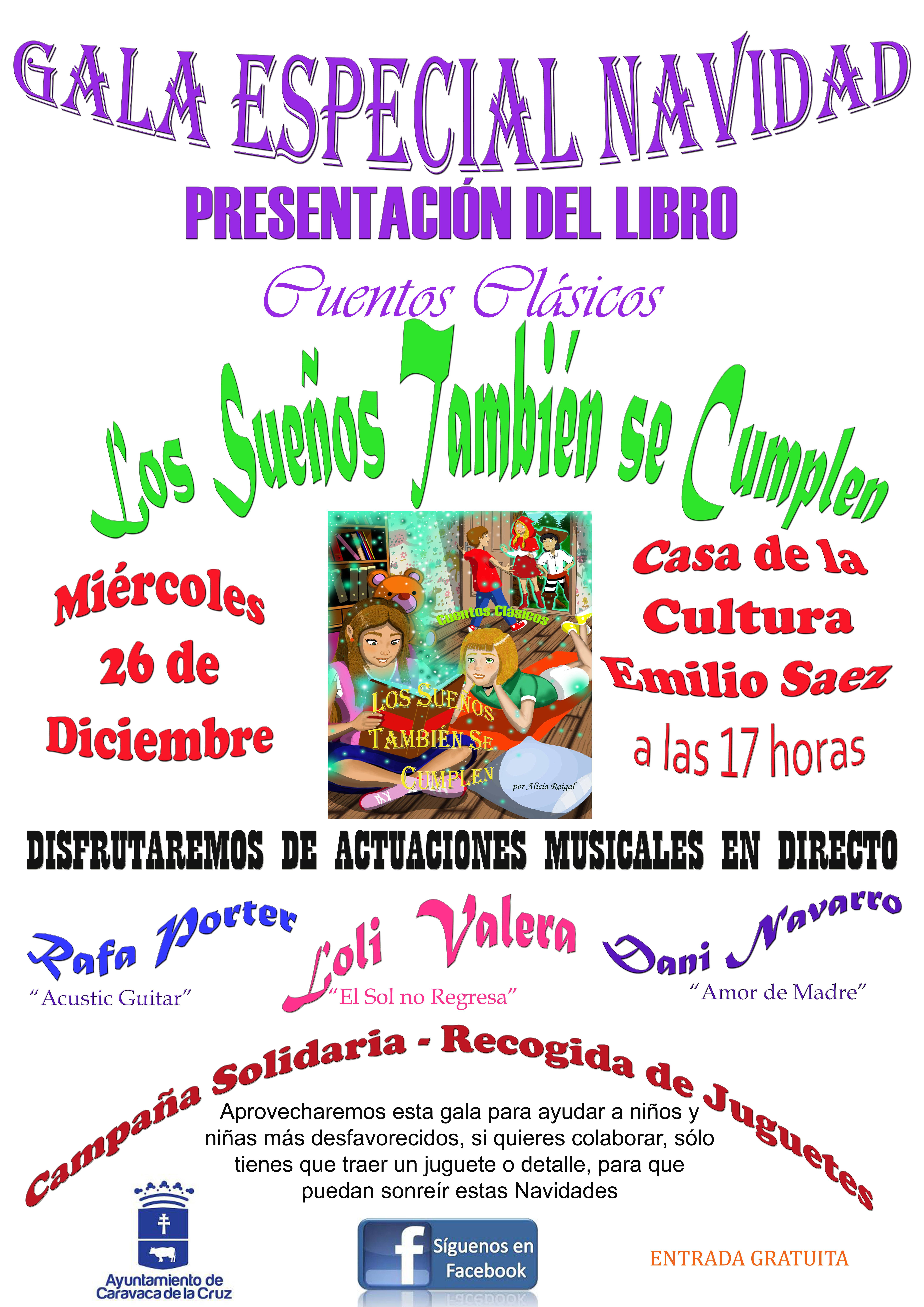 En cuanto a la programación de actividades dirigidas al público infantil, el miércoles, 26 de diciembre, a las 17.00 horas, la Concejalía de Cultura, a través de la Biblioteca Municipal, celebrará en la Casa de la Cultura ‘Emilio Sáez’ la presentación del libro de Alicia Raigal ‘Cuentos clásicos. Los sueños también se cumplen’, con actuaciones musicales en directo. El acceso será gratuito y de forma voluntaria se podrá aportar un juguete para colaborar con la campaña solidaria de Navidad.