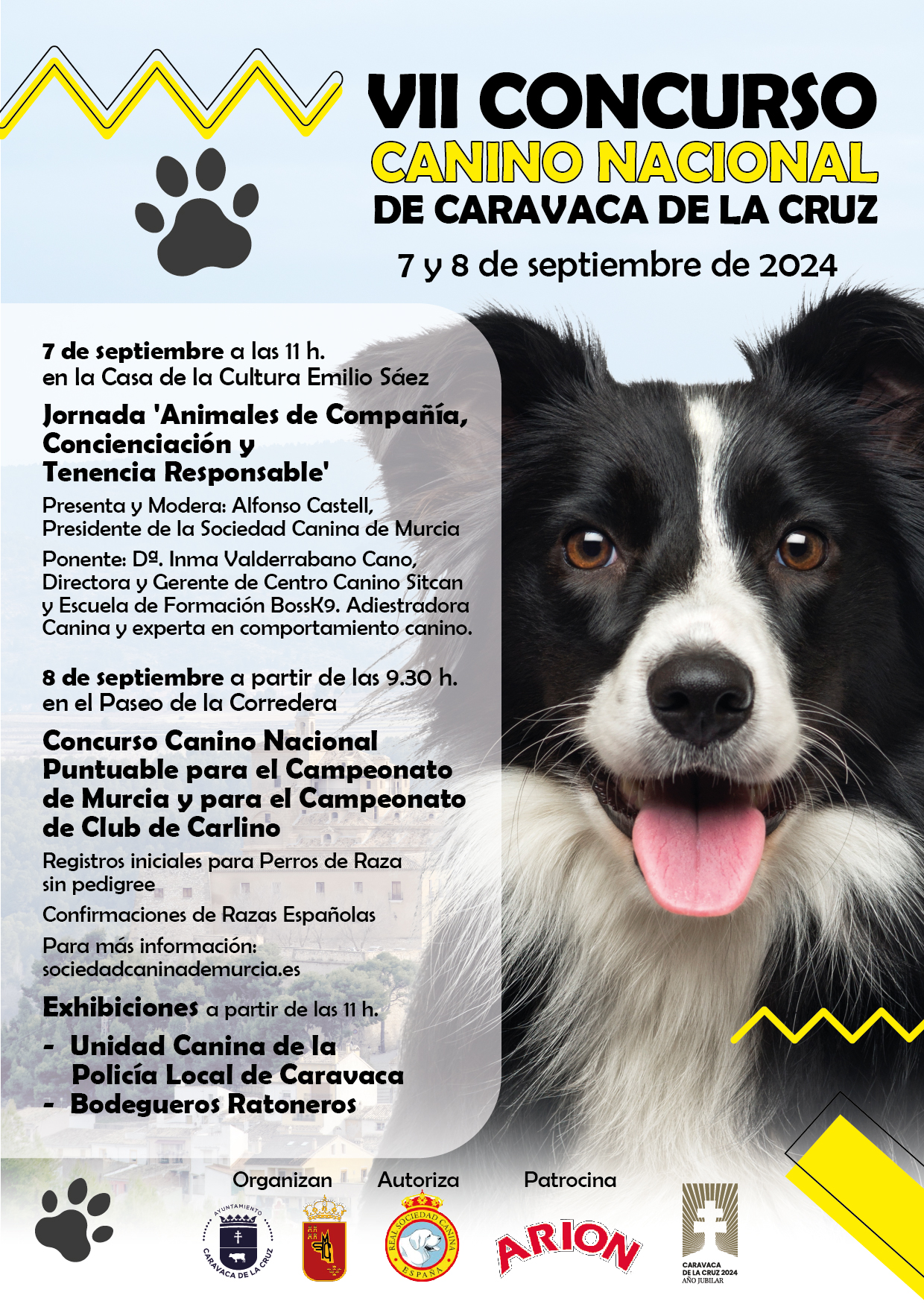 03/09/2024. La Sociedad Canina de Murcia ha elegido Caravaca de la Cruz, en su Año Jubilar 2024, para celebrar uno de sus concursos. El evento, organizado con la colaboración de la Concejalía de Protección Animal del Consistorio caravaqueño, tendrá lugar este domingo, 8 de septiembre, en el paseo de La Corredera y estará acompañado de exhibiciones y otras actividades para todos los públicos.