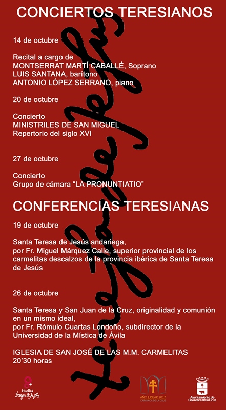 El segundo Ciclo Teresiano de Música y Conferencias, que organiza la Concejalía de Cultura del Ayuntamiento de Caravaca de la Cruz, en colaboración con los Padres Carmelitas Descalzos, se abre este sábado, 14 de octubre, con un recital de ópera y zarzuela protagonizado por Montserrat Martí Caballé.