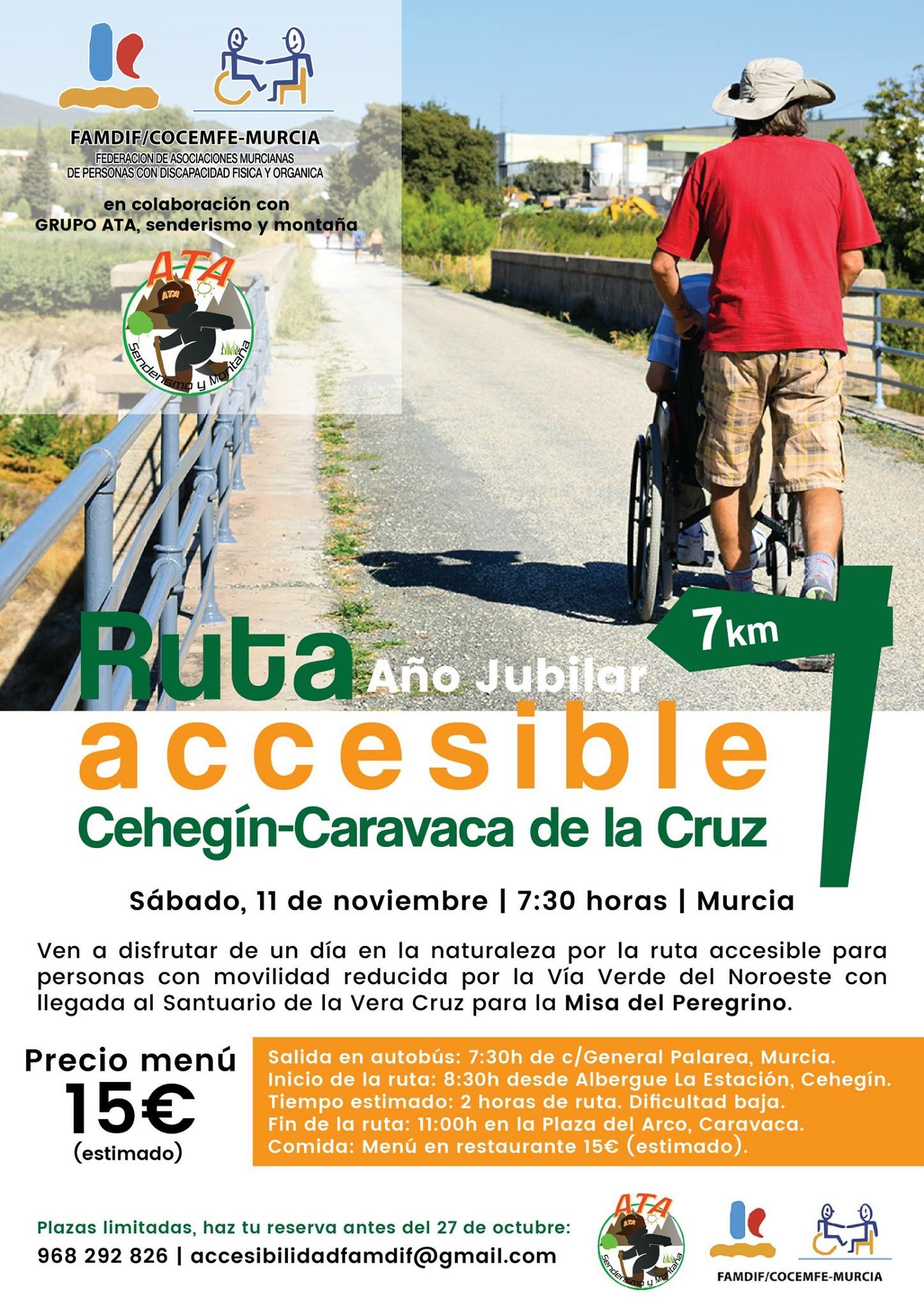 26/10/17. La Federación de Asociaciones Murcianas de Personas con Discapacidad Física y Orgánica (FAMDIF-COCEMFE-Murcia), en colaboración con el grupo ATA de Senderismo y Montaña, se suma a la conmemoración del Año Jubilar 2017, con la realización de una ruta accesible por la Vía Verde del Noroeste.