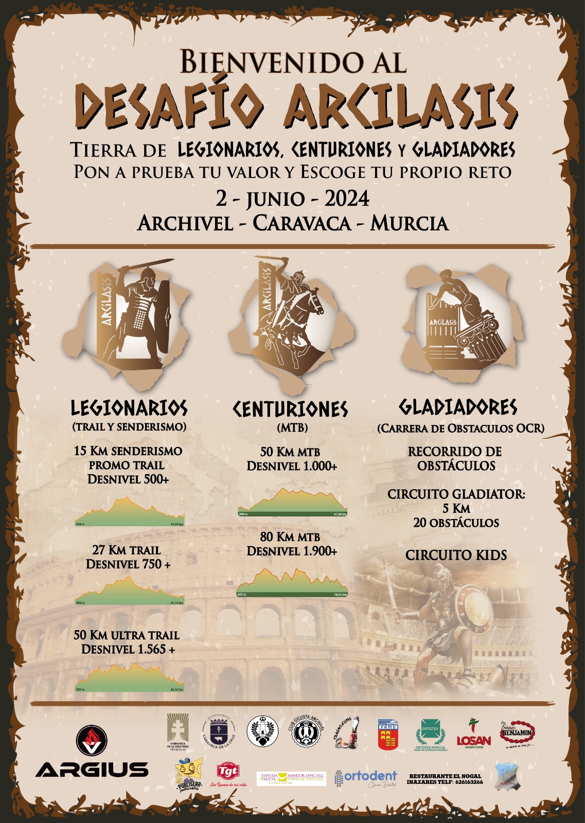 Además de las modalidades a pie y en bicicleta, el Desafío Arcilasis recoge una carrera de obstáculos como principal novedad. Será un circuito de cinco kilómetros y 20 obstáculos que convertirá a en gladiadores a quienes lo superen. Para integrar a los niños y niñas en este multievento deportivo también habrá un ‘Circuito Kids’.