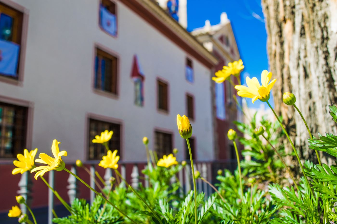 Se encuentra junto a la típica plaza de los Caballos del Vino (conocida popularmente como Plaza del Hoyo), donde se encuentra un monumento al Caballo del Vino.