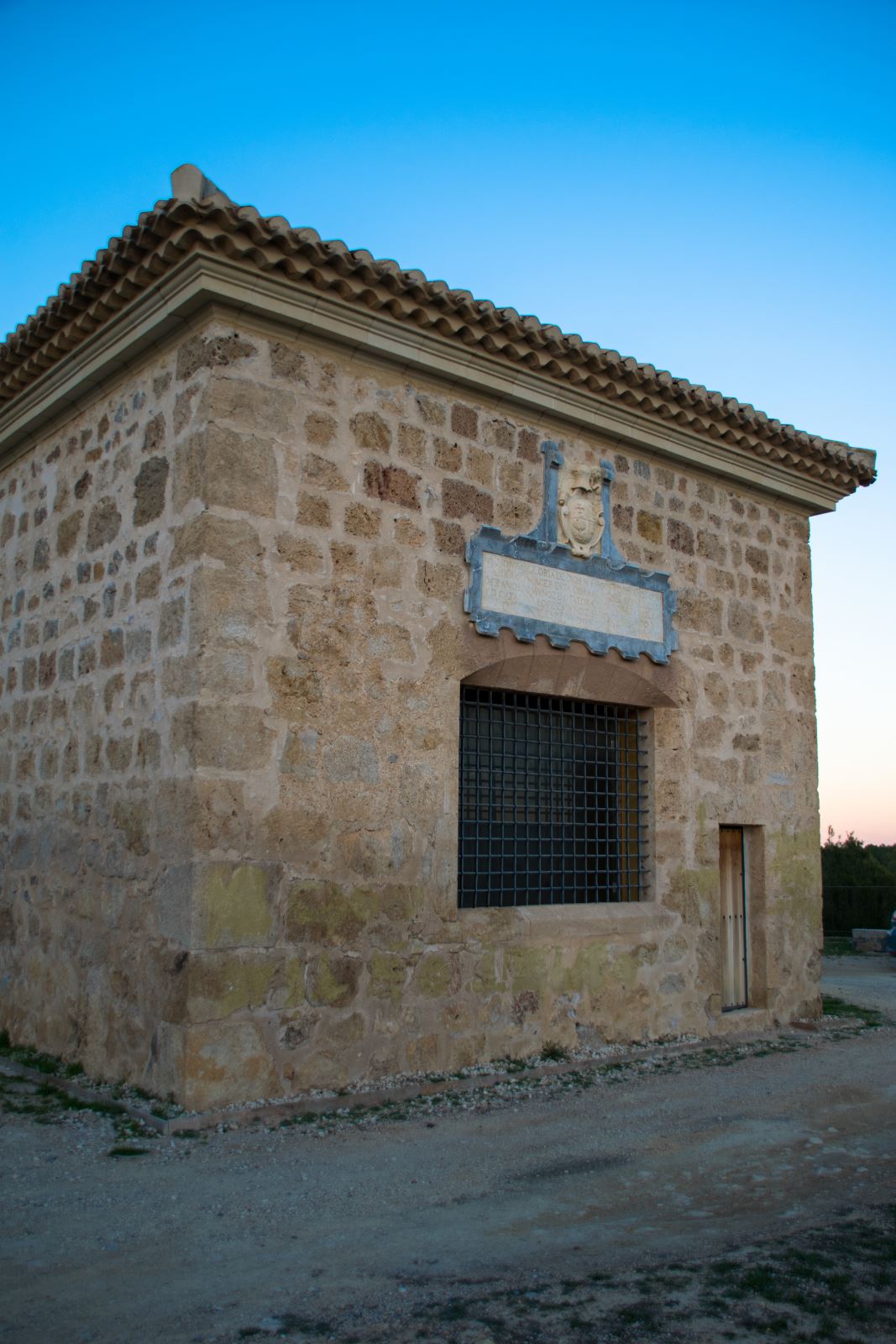 Es de planta rectangular y cubierta a cuatro aguas cuyas lomeras descansan sobre una amplia cornisa. La fachada, que da nombre al edificio, tiene una gran reja de hierro forjado, a manera de ventana que es su única decoración. En el interior sólo se encuentra una sólida mesa de altar.