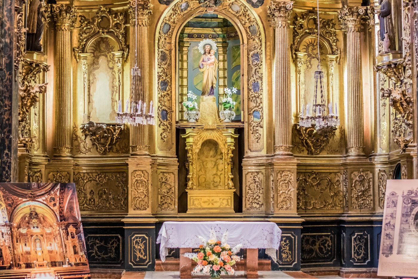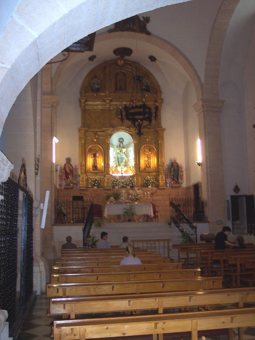 En la Capilla Mayor vemos el retablo barroco de José Sáez, procedente de la desamortizada Iglesia de la Compañía de Jesús.