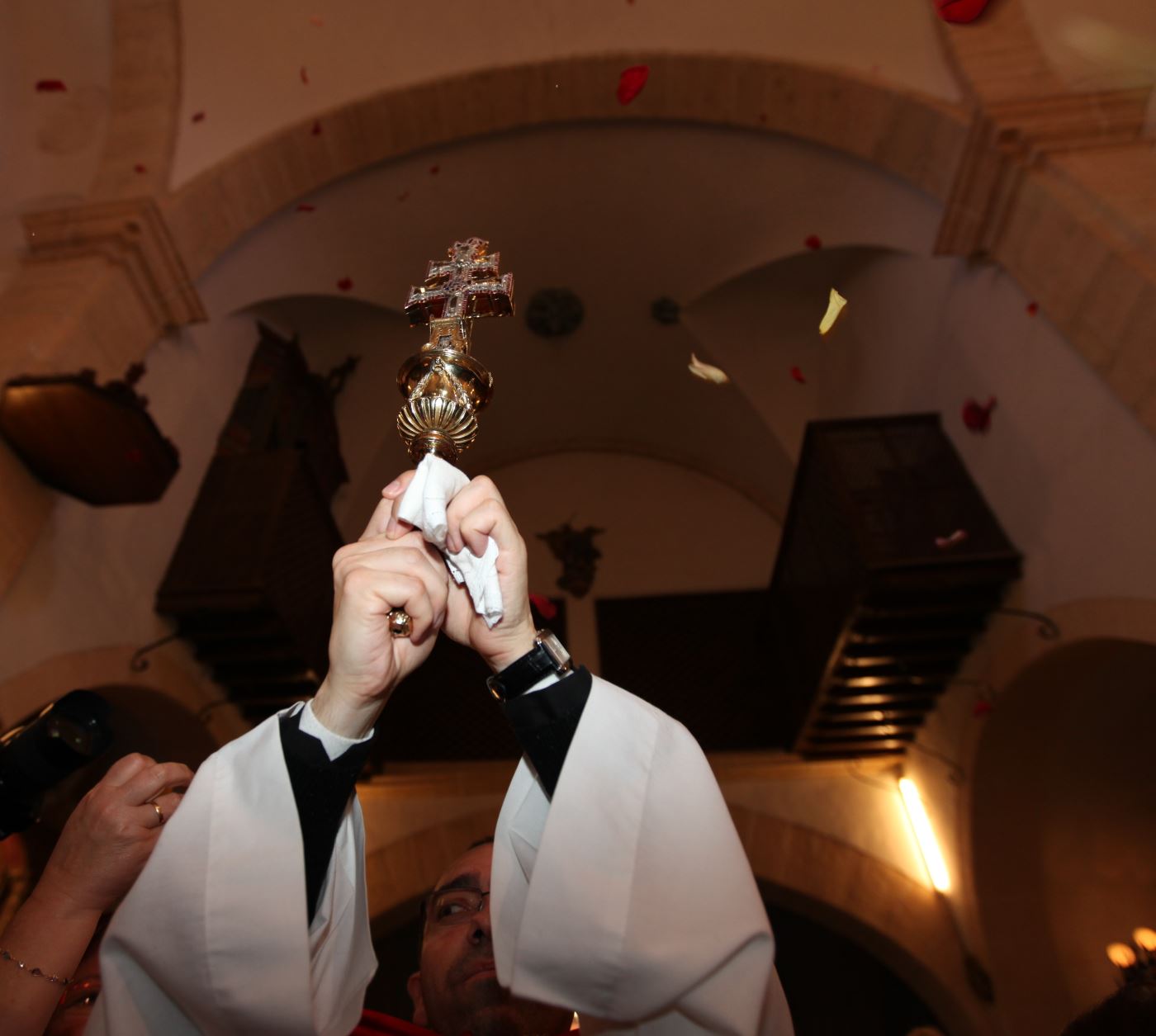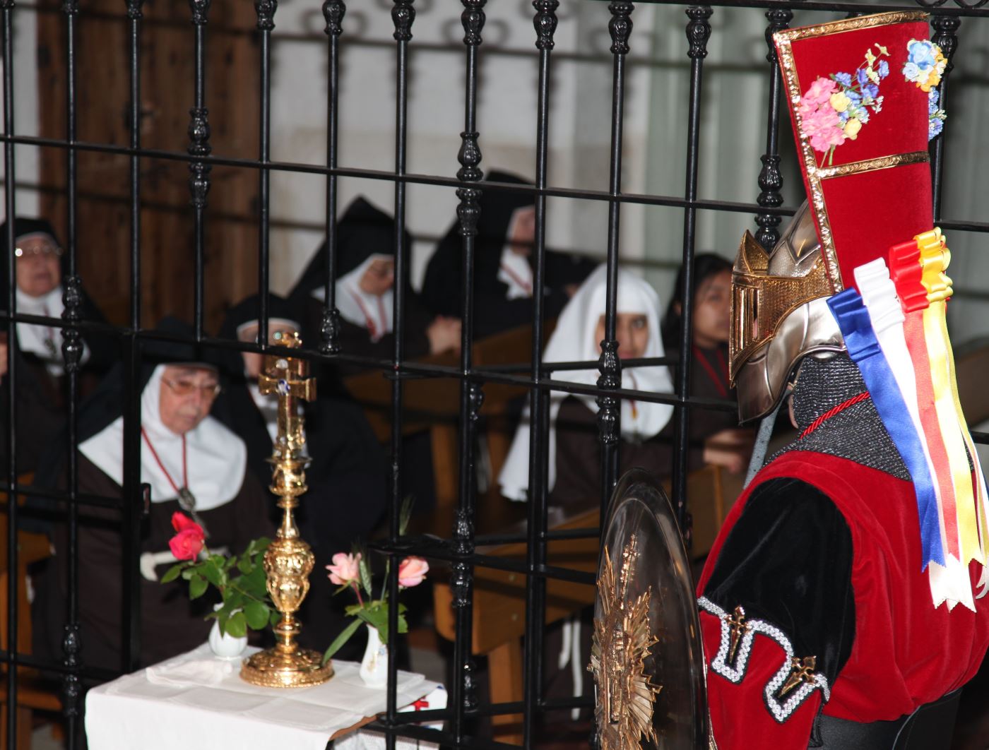 En la cúpula de la iglesia existe un pequeño orificio por el que las madres clarisas dejan caer miles de pétalos de rosa en la mañana del día 4 de mayo cuando la Stma.y Vera Cruz visita la iglesia.